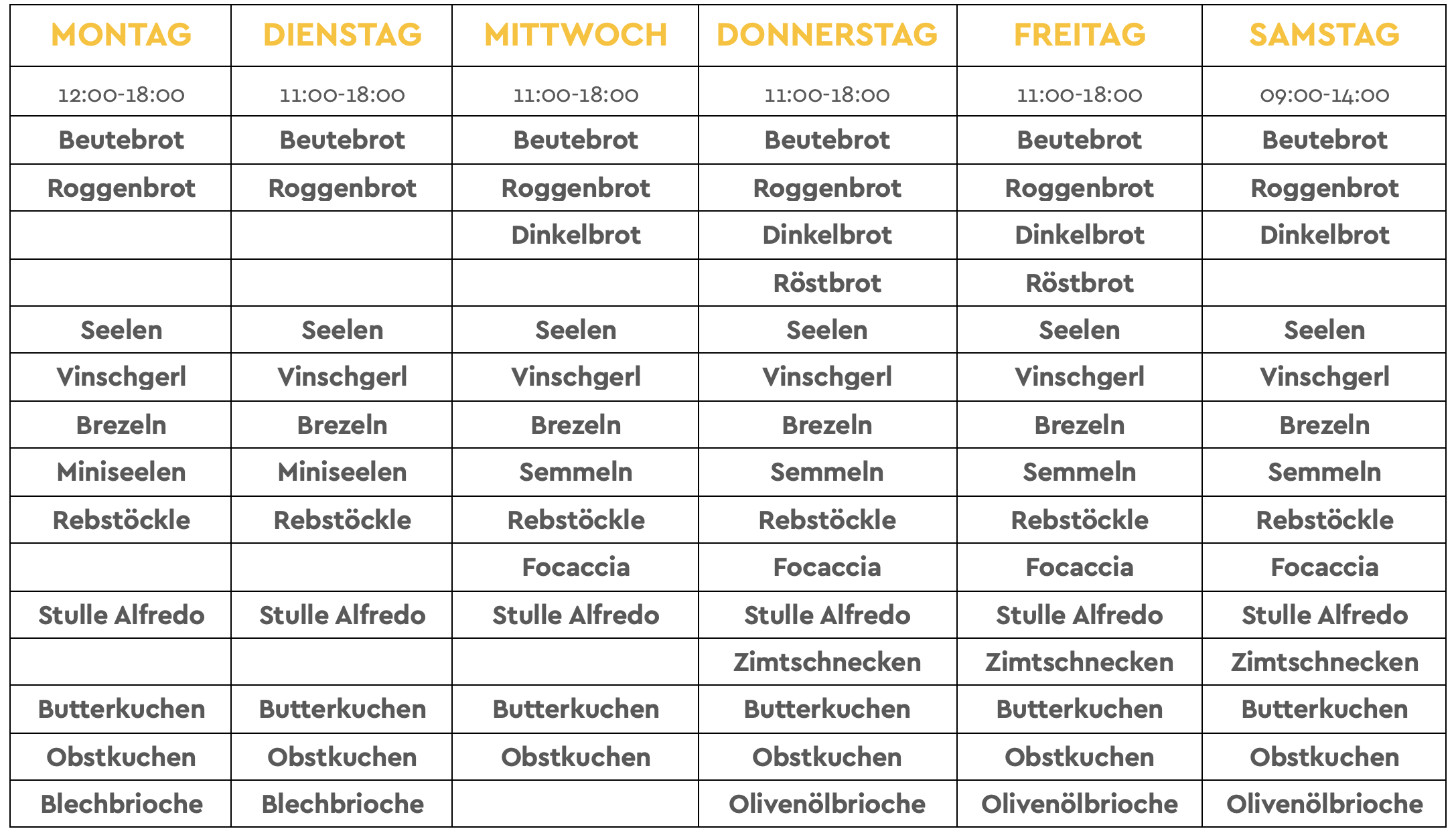 Montag bis Freitag von 11 bis 18 Uhr